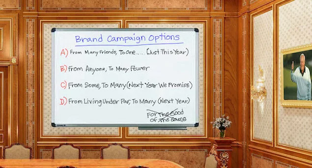 Note the USGA’s former “For The Good Of The Game” slogan has been crossed off and is an unlikely option.